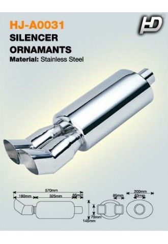 Rozsdamentes saválló Hossz:570mm Bemenő cső átmérő:63mm Vég átmérő:2x 85x75mm 1600cm3-től ajánlott Csak sport célra |